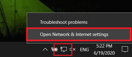 1. Open the Network and Sharing Center by right-clicking the network icon in the system tray and selecting it.