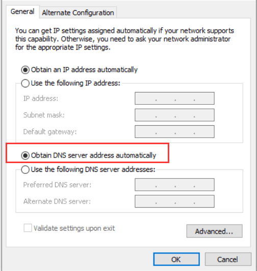 6. Recovery: you need to change back to the original DNS when you stop using SuperFast. Repeat steps 1-5 for your physical network adapter, and then select Obtain DNS server address automatically.